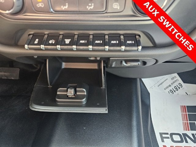 - Provision for cab roof-mounted lamp/beacon provides an overhead console mounted switch and electrical wiring tucked beneath the headliner for a body upfitter to connect a body-mounted warning or emergency lamp